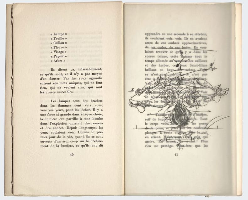 Montpellier, Fata Morgana, 1973. 21,5 x 12,5 cm, 62 pp. En feuilles sous chemise déditeur. très bel état. Édition originale illustrée de 4 dessins en noir reproduits sur papier calque par Vladimir Velickovic. 1/65 de tête sur Arches contenant deux eaux-fortes justifiées et signées à la mine de plomb par Velickovic.