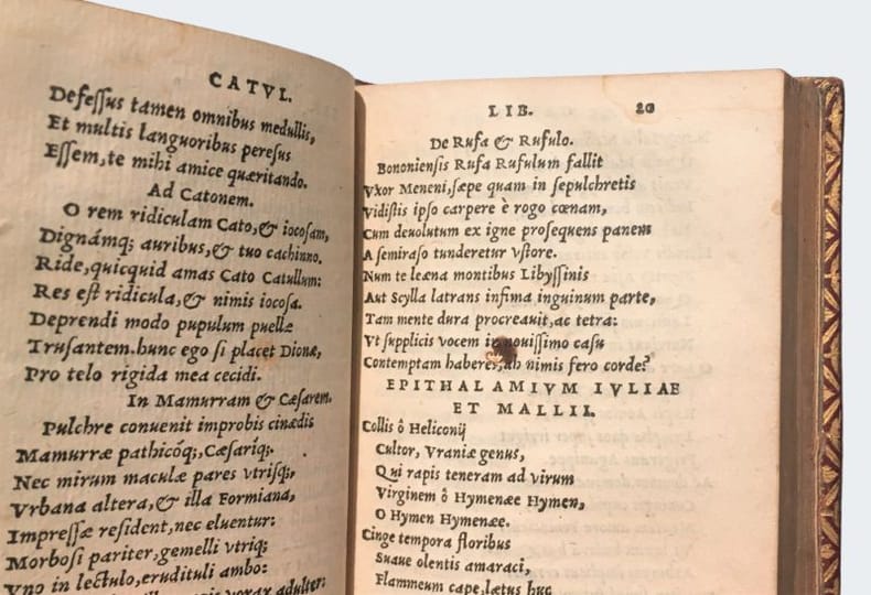 Bonne édition sur papier fort, montrant l’intérêt croissant des érudits pour les œuvres des poètes romains au cours de la période des Lumières, elle comprend les œuvres en forme d’élégie, Catulle, Tibulle et Properce. M5-A