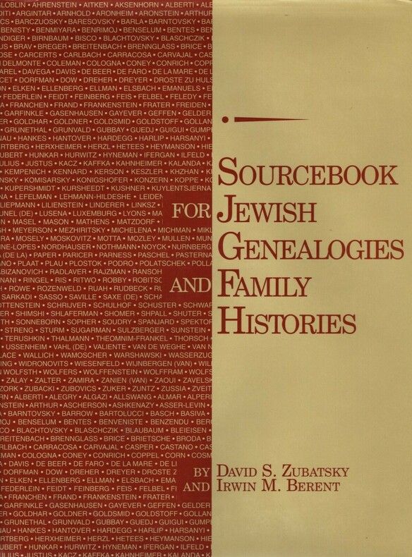 David S. Zubatsky et Irwin M. Barent Sourcebook for Jewish Genealogies and Family Histories 1996 1 volume relié cartonnage sous jaquette format : 28.5 x 22 cm 456 pages (12.000 noms répertoriés)