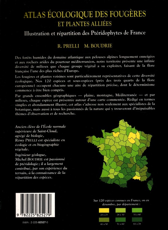 Rémy Prelli - Michel Boudrie Atlas écologique des fougères et plantes alliées Illustration et répartition des Ptéridophytes de France Lechevalier 1992 1 volume broché format : 24 x 17.5 cm 272 pages illustrations en noir et blanc
