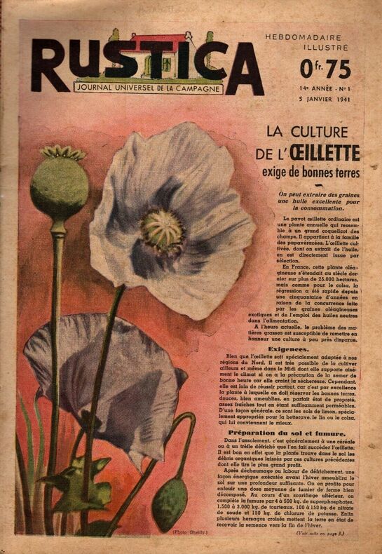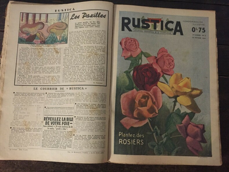 Rustica Journal universel de la campagne 1er semestre 1941 Du n°1 (5 janvier 1941) au n°26 (29 juin 1941) 1 volume broché (reliure amateur en papier fort) format : 28.5 x 20 cm 364 pages, nombreuses illustrations en couleurs et en noir et blanc