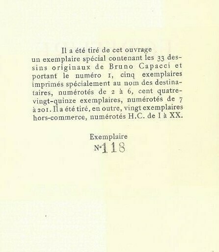 Bruno Capacci Ecriture dessins Textes de Paul Colinet Edition originale, un des 195 exemplaires (n°118) Paris, Fontaine 1947 1 volume in-8 (20.5 x 14.5 cm) broché illustré de 33 dessins de Bruno Capacci