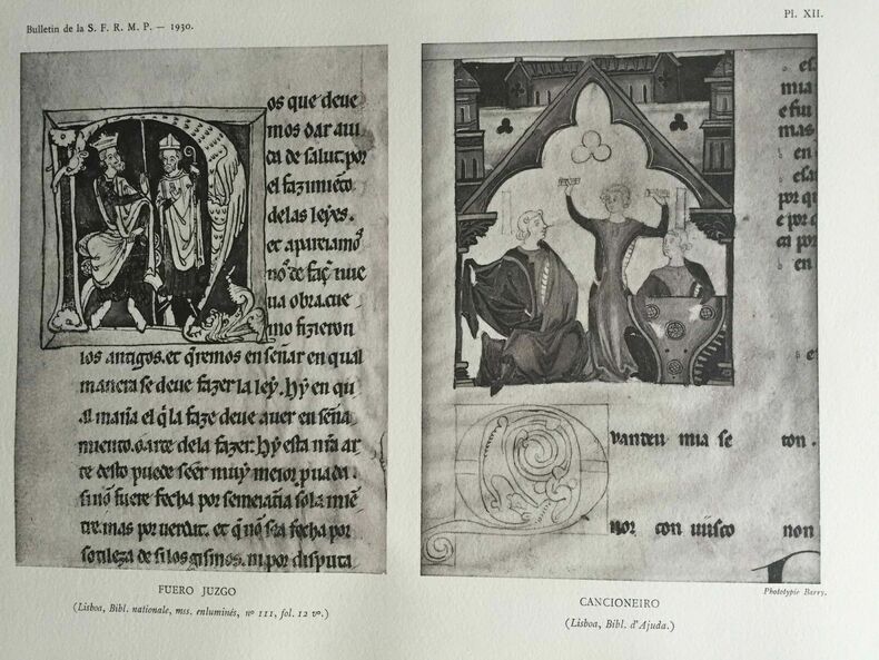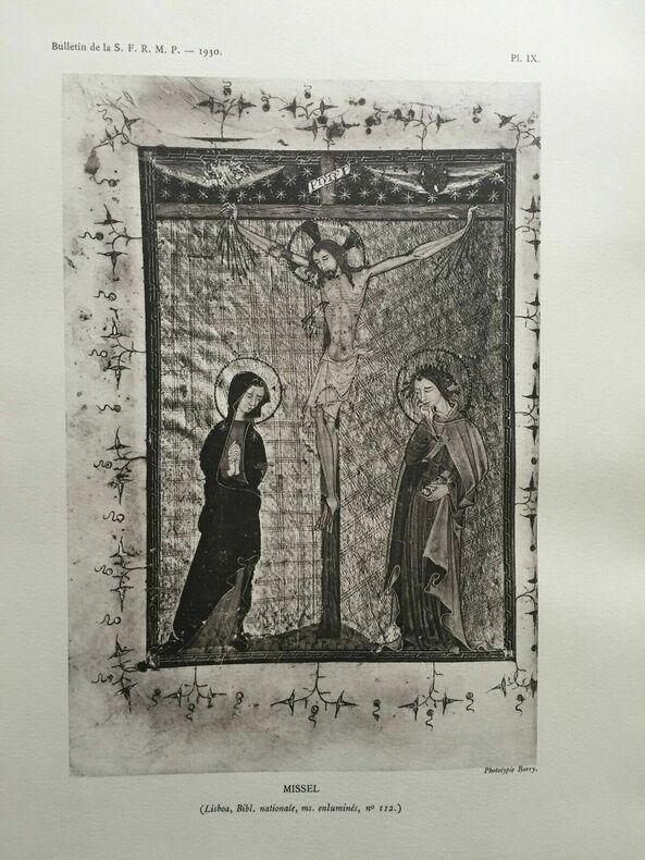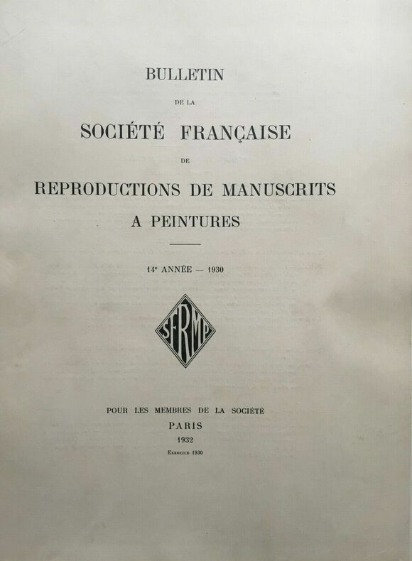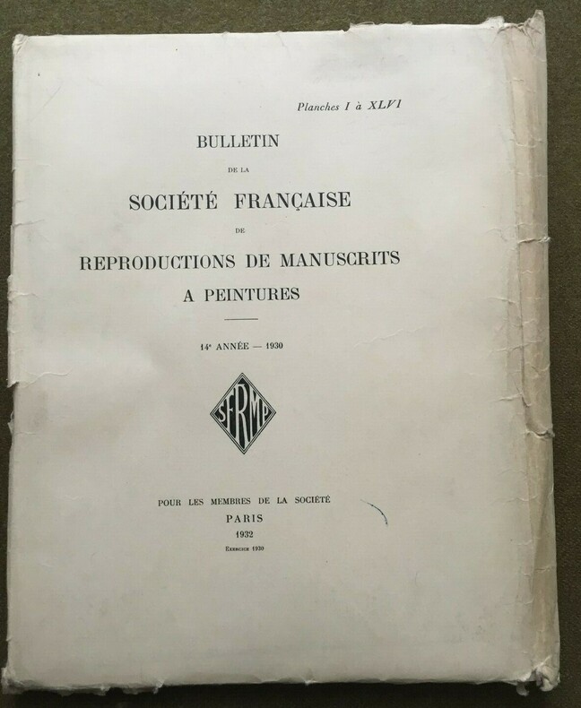 Bulletin de la société française de reproduction de manuscrits à peintures 14e année - 1930 Pour les membres de la société, Paris 1932 38 feuilles de texte + 46 planches (dont la dernière sur double page) format : 33 x 24.5 cm dans l'enveloppe de l'éditeur (présentant des usures : voir photo) Les manuscrits enluminés reproduits dans cette étude appartiennent aux collections publiques portugaises.