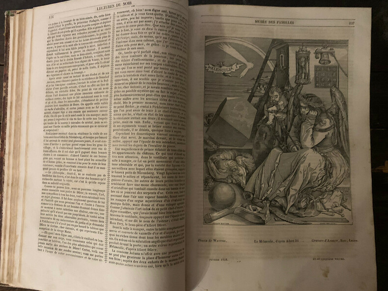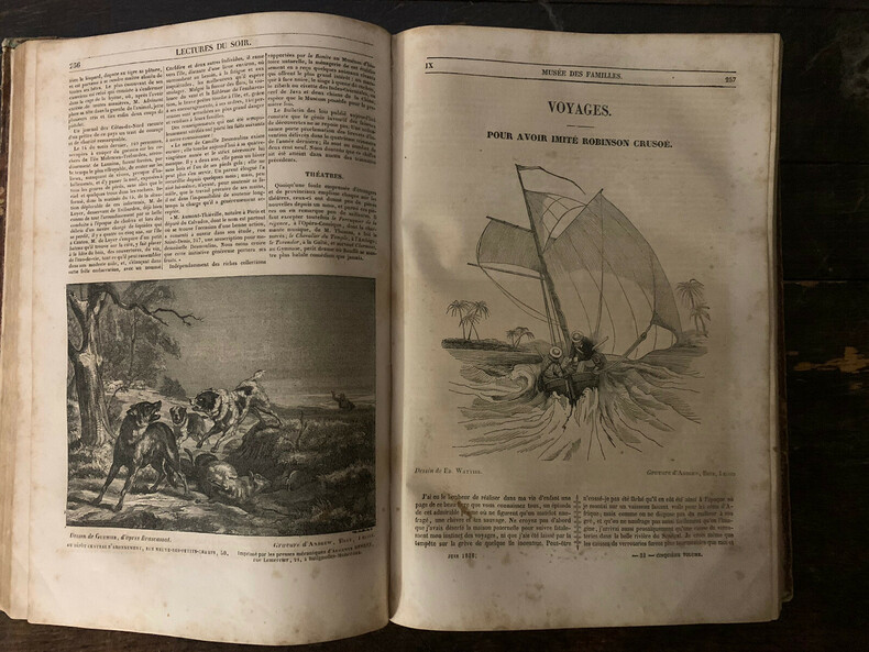 Musée des familles Lectures du soir Cinquième et sixième volumes Année 1838 et 1839 1 volume relié format : 28.5 x 19 cm 380 et 380 pages illustrées