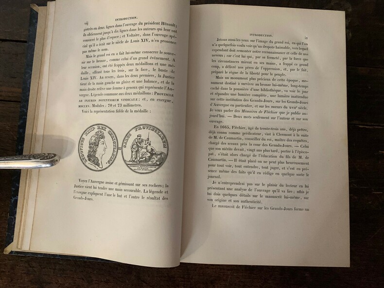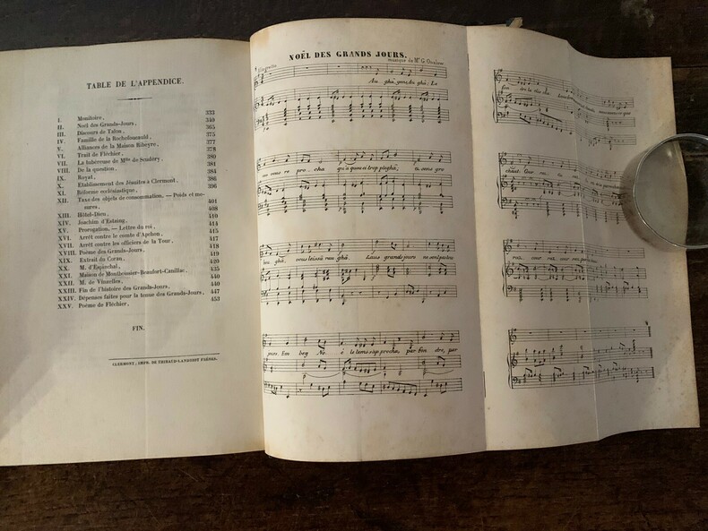 Mémoires de Fléchier sur les grands jours tenus à Clermont en 1665-66 publiés par B. Gonod, bibliothécaire de la ville de Clermont Paris, Porquet 1844 1 volume relié format : 23.5 x 16 cm 462 pages, bien complet des deux hors textes : Séance des Grands Jours et partition du Noël des grand-jours