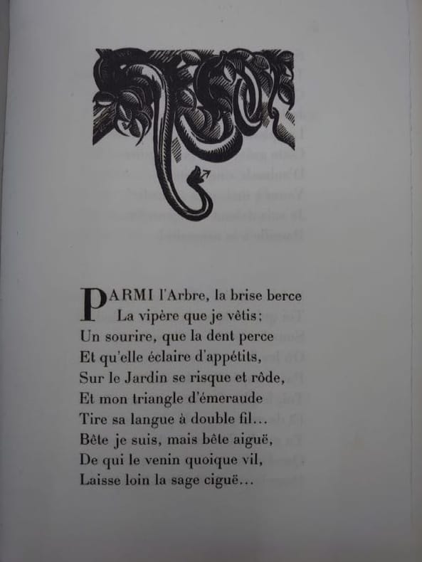 Les Bibliophiles De Provence S.L. 1937 In-4 ( 285 X 230 mm ) de 202 pages, broché sous couverture illustrée d'un seul tenant sur les plats et le dos. 25 lithographies hors-texte de Edy LEGRAND. Edition originale du "Serpent". Tirage limité à 150 exemplaires sur Rives, ici le N° XVIII, nominatif. Quelques rousseurs, bon exemplaire.