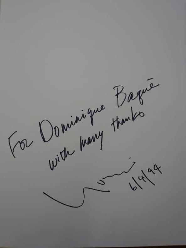 1994 Yobisha, 1994. 30,5 x 23 cm, non paginé. Relié cartonnage d'éditeur sous jaquette illustrée. Dos passé, marque de coup, livre en état moyen. Envoi autographe signé de l'auteur à la préfacière Dominique Bacqué, insérée feuillet du texte en français de l'introduction qui dans le livre est en anglais.