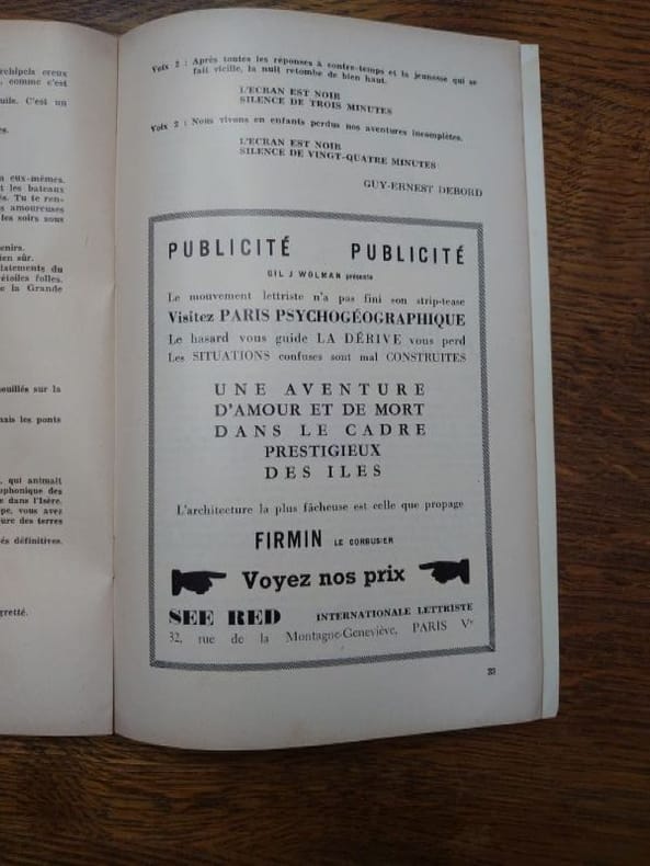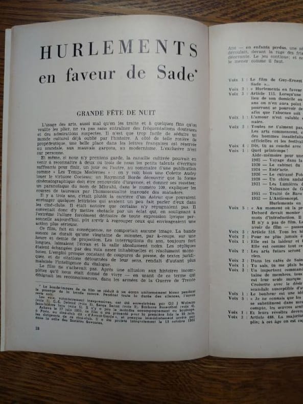 21,5 x 13,5 cm, 40 pp. Plaquette agrafée, couverture légèrement salie, quelques rousseurs, sinon bon exemplaire. Textes de Guy-Ernest Debord (Hurlements en faveur de Sade), Paul Nougé, Marcel Marien, Gilbert Sénécaut, Michèle Bernstein...