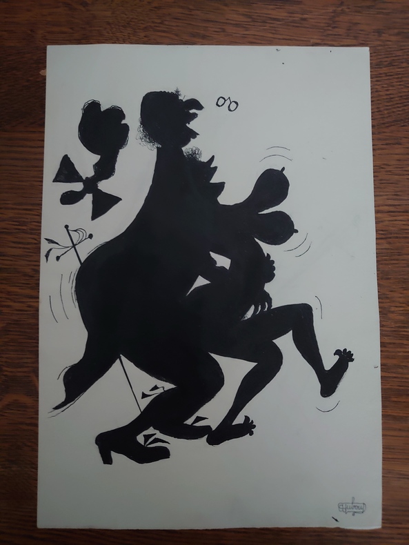 33,5 x 22,5 cm, dessin original d'Albert Dubout (encre) reproduit dans le livre illustré par Dubout "Justine " de Sade page 42.