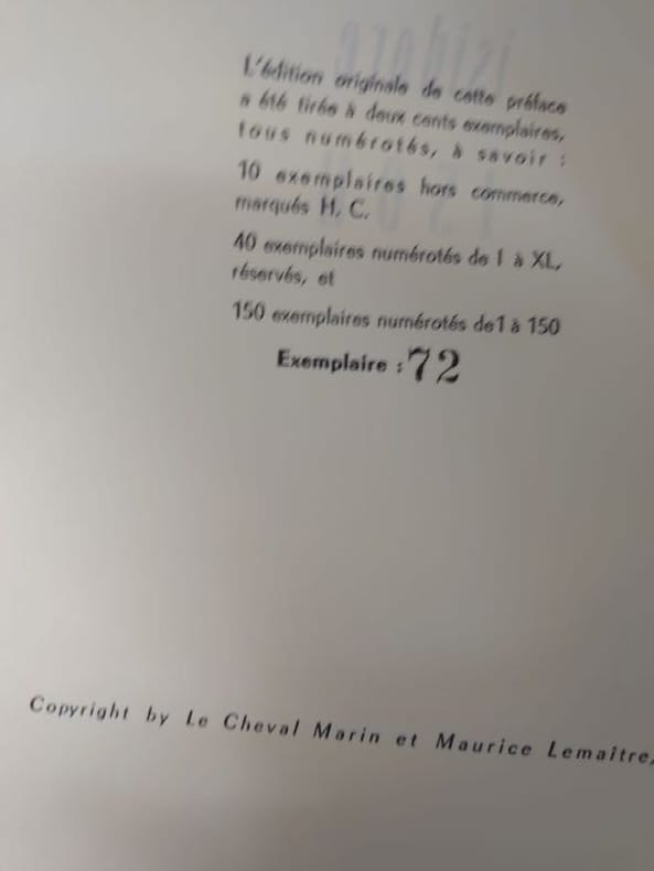 Paris, Le Cheval marin, 1954, in-8, br. 32 p. Édition originale tirée à 200 ex.