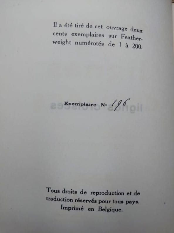Les œuvres et ouvrages décrits sont complets et en bon état, sauf indication contraire. Nos conditions de vente sont conformes aux usages de la Chambre professionnelle belge de la Librairie Ancienne et Moderne (CLAM) et aux règlements de la Ligue Internationale de la Librairie Ancienne (LILA). Pour les expéditions, nous proposons un tarif économique par Mondial Relay pour les pays disponibles (France, Allemagne, Luxembourg, Pays-bas, Autriche, Espagne, Italie, Postugal); pour la Belgique par BPost sauf pour les livres au-dessus de 500,00€ (via DHL). De manière générale, les expéditions sont réalisées par DHL avec suivi aux risuqes de l'acquéreur, part à la charge de celui-ci. Prijzen zijn netto, in euro (€). Alle kunstvoorwerpen en boeken bevinden zich in goede staat, tenzij anders vermeld. Onze verkoopsvoorwaarden zijn in overeenstemming met de bepalingen van de Belgische Beroepskamer van Antiquaren (BBA) en de reglementen van de International League of Antiquarian Booksellers (ILAB). Voor verzending bieden wij een voordelig tarief van Mondial Relay voor beschikbare landen (Frankrijk, Duitsland, Luxemburg, Nederland, Oostenrijk, Spanje, Italië, Postugal); voor België via BPost behalve voor boeken boven € 500,00 (via DHL). Over het algemeen worden verzendingen uitgevoerd door DHL met tracking op risico van de koper, op kosten van de koper. Prices are net, in euro (€). All items or books are complete and in good condition, except opposite indication. Our terms of sale are in accordance with the practices of the Chambre professionnelle belge de la Librairie Ancienne et Moderne (CLAM) and with the rules of the International League of Antiquarian Booksellers (ILAB). For shipping, we offer an economical rate by Mondial Relay for available countries (France, Germany, Luxembourg, Netherlands, Austria, Spain, Italy, Postugal); for Belgium by BPost except for books above €500.00 (via DHL). Generally speaking, shipments are made by DHL with tracking at the buyer's risk, at the buyer's expense.
