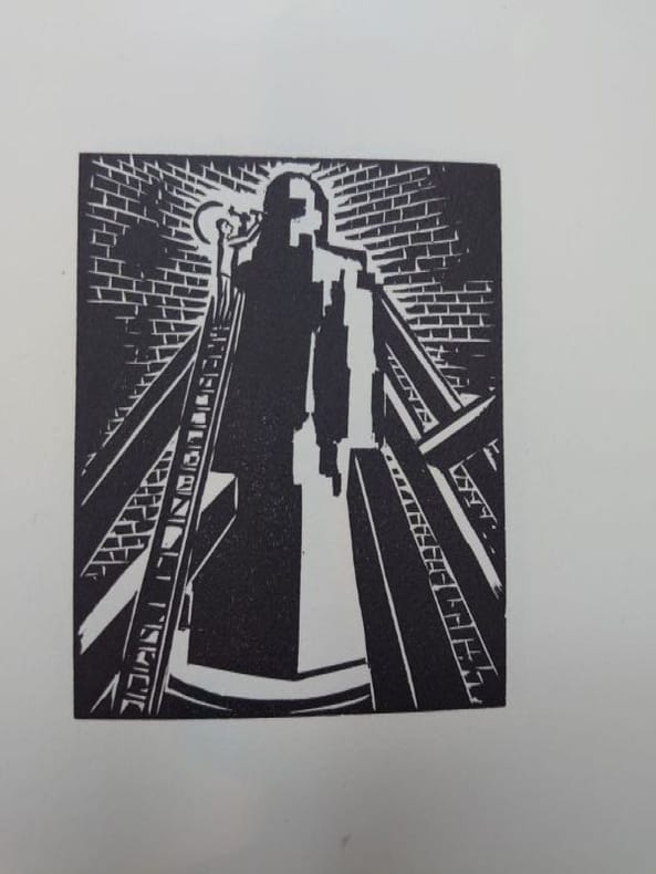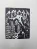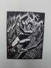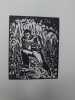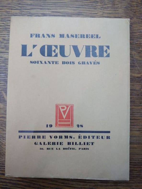 Paris Pierre Vorms, Editeur; Galerie Billiet 1928 Première édition. Roman graphique gravé sur bois. Illustré par 60 magnifiques planches gravées sur bois par Frans Masereel. Sous couverture cartonnée avec jaquette repliée, avec le logo de l'éditeur en rouge. Bords frangés. Le tiers inférieur du dos est manquant, sans incidence sur le titre. Couverture en papier jaunie par le temps, avec des résidus d'étiquette. Dans l'ensemble, un bon exemplaire d'un ouvrage rare. [4] + 60 planches + [4] pp. 185 x 140 mm (7Œ x 5œ pouces).