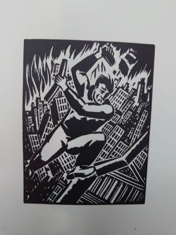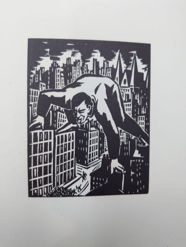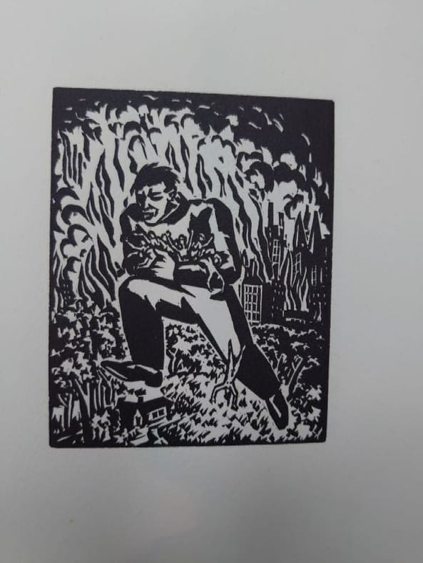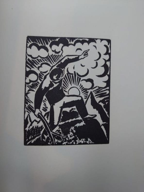 First edition. Wood engraved graphic novel. Illustrated by 60 wonderful wood engraved plates by Frans Masereel. In card wrappers with folded-in paper wrapper, with publisher's device in red. Deckled edges. Lower third missing on spine, not affecting title. Paper wrapper age toned, and with residue from a label. Overall a good copy of a scarce item. [4] + 60 plates + [4] pp. 185 x 140 mm (7Œ x 5œ inches). .