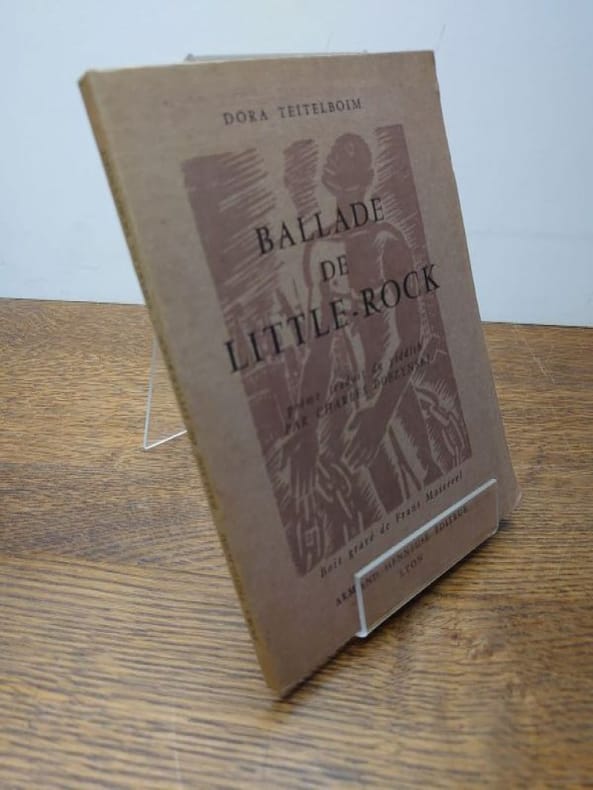 Unique édition française : l'originalité de ce poème est d'associer la mémoire juive à la ségrégation raciale des Afro-américains, révélée (entre autres) par la fameuse "Affaire de Little Rock" ("Little Rock nine" en 1957), qui défraya la chronique de l'Arkansas et de l'ensemble des États-Unis. Il s'agissait du refus de la Little Rock Central High School d'accepter en son sein neuf étudiants afro-américains, même après les deux arrêts Brown vs. Board of education de la Cour suprême (en 1954 et 1955) déclarant la ségrégation raciale inconstitutionnelle dans les écoles publiques.Dora Teitelboim (1914-1992), née à Brest-Litovsk, était une poétesse américaine d'expression yiddish.Un seul exemplaire au CCF (BnF).Envoi du traducteur à Jean Fréville. - - VENTE PAR CORRESPONDANCE UNIQUEMENT