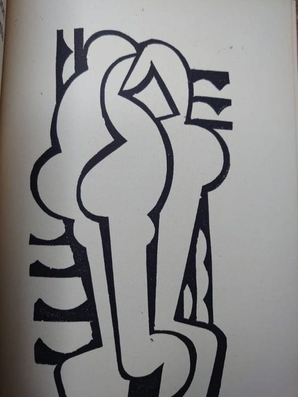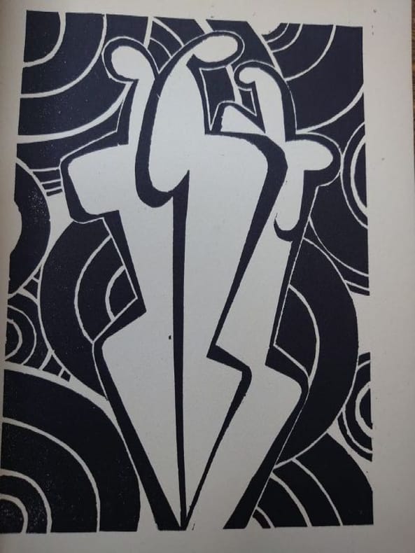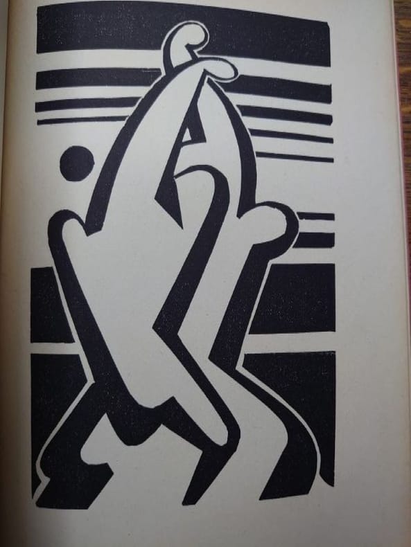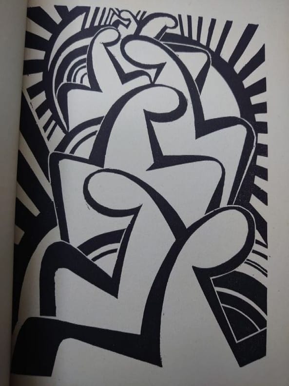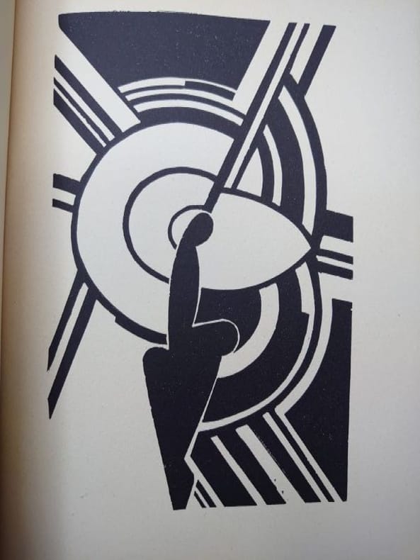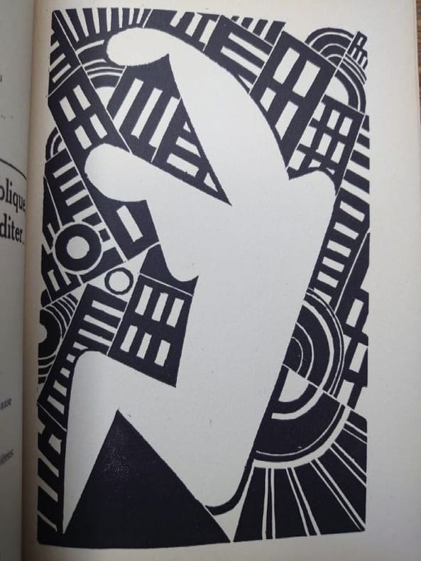 7. Bruxelles, éditions L'Equerre, 1917, 22 x 15,5 cm, 86 pp, avec 9 linos pleine page de Flouquet et une photogravure h.t., broché, couverture originale.