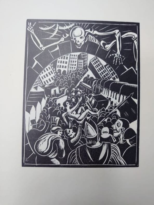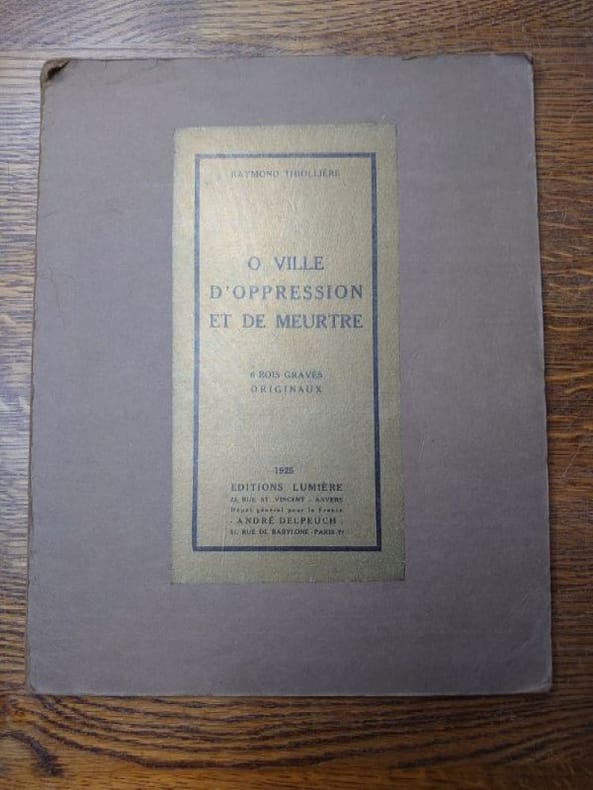 Anvers, Éditions Lumière, 1925. 30 x 24 cm, sous farde imprimée, six bois gravés originaux. Farde avec des petites déchirures, bois gravés en bel état. Édition originale, un des 225 ex. num. sur vélin.