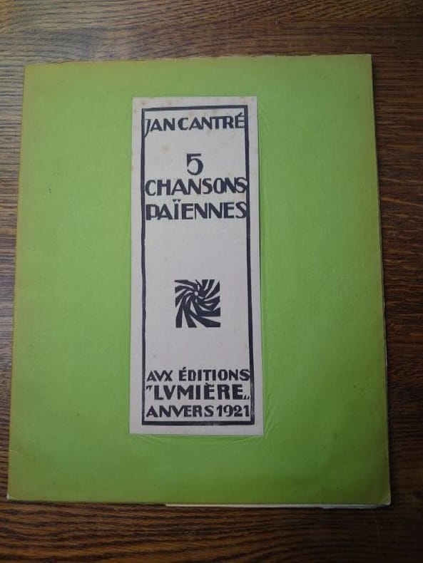 Anvers, Aux Éditions "Lumière", 1921. 28,5 x 23,5 cm, en feuilles sous deux fardes imprimées. Fardes légèrement usées sinon bel exemplaire. Édition originale, un des 10 exemplaires sur vergé d'Arches. Tous les bois gravés sont signés au crayon par Jan Cantré.