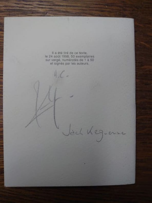 1985 Le Salon d'Art, les éditions de La Pierre d’Alun, Bruxelles, 1998. 14 x 11 cm, une plaquette de 8 ff. non paginé. Bel exemplaire. Un des ex. hors commerce sur vergé signé par l'auteur et l'artiste.