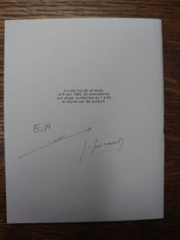 1983 Le Salon d'Art, les éditions de La Pierre d’Alun, Bruxelles, 1983. 14 x 11 cm, une plaquette de 8 ff. non paginé. Bel exemplaire. Un des 50 ex. num. sur vergé signé par l'auteur et l'artiste.