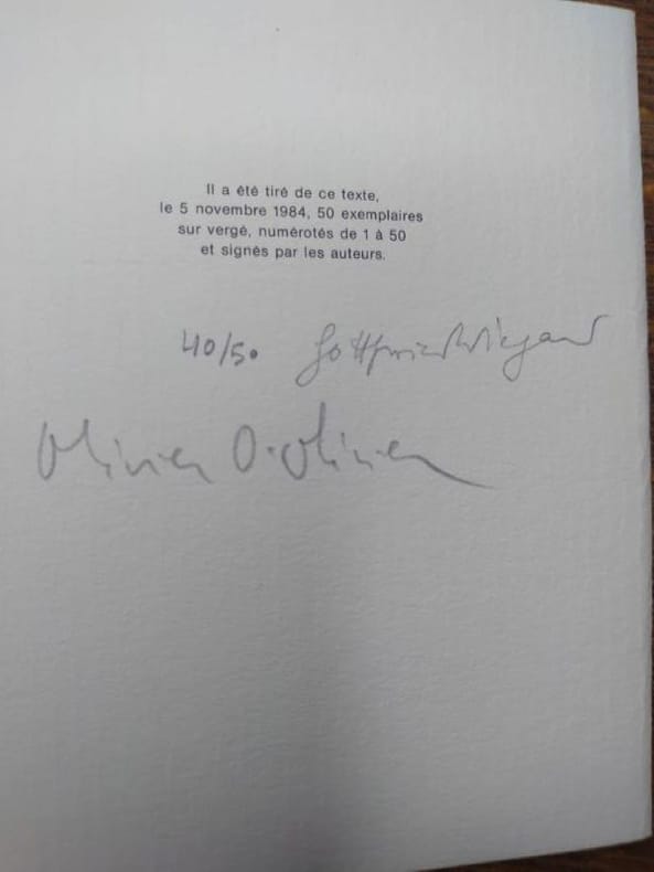 1985 Le Salon d'Art, les éditions de La Pierre d’Alun, Bruxelles, 1985. 14 x 11 cm, une plaquette de 8 ff. non paginé. Bel exemplaire. Un des 50 ex. num. sur vergé signé par l'auteur et l'artiste.
