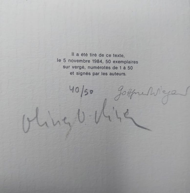 1985 Le Salon d'Art, les éditions de La Pierre d’Alun, Bruxelles, 1985. 14 x 11 cm, une plaquette de 8 ff. non paginé. Bel exemplaire. Un des 50 ex. num. sur vergé signé par l'auteur et l'artiste.