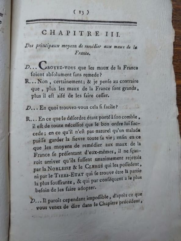 Sans nom d'éditeur, sans lieu, sans date [1789]. 21 x 13,5 cm, 26 pp. Broché, exemplaire légèrement usée avec des traces de tampon sur deux pages sinon bon exemplaire.