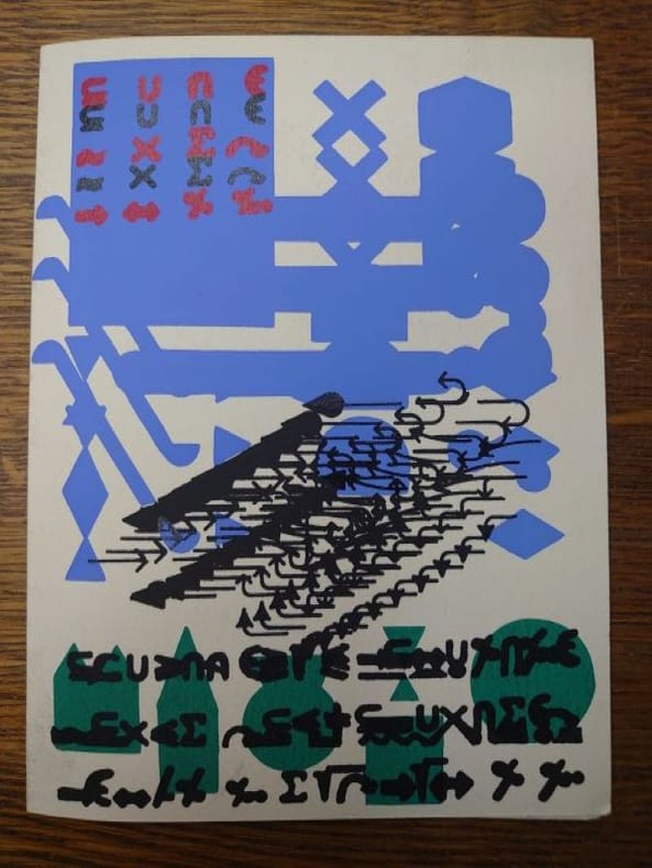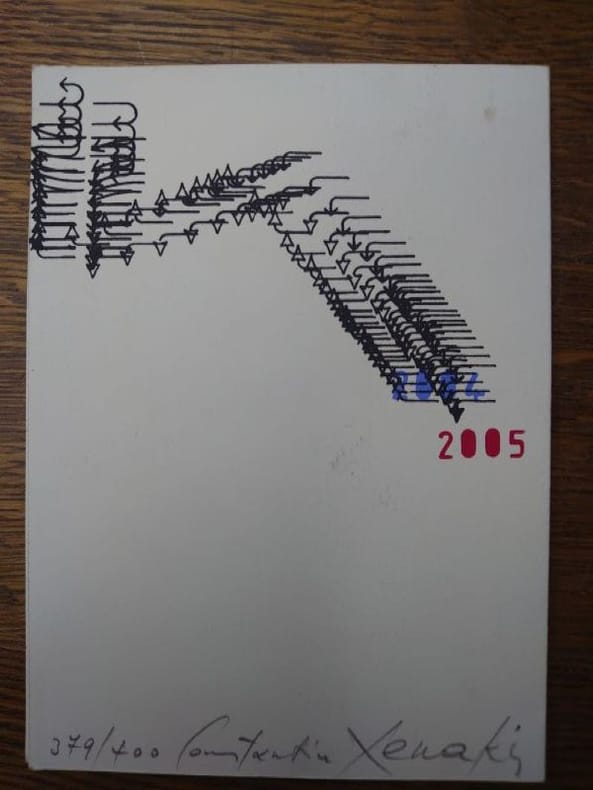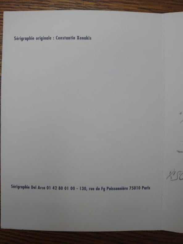 Sérigraphie originale signée et numérotée au crayon n° 379/400. Format fermé : 21 x 15,3 cm. Format ouvert : 21 x 30,7 cm. Carte deux volets. Bel état. Avec un envoi autographe signé de l'artiste.