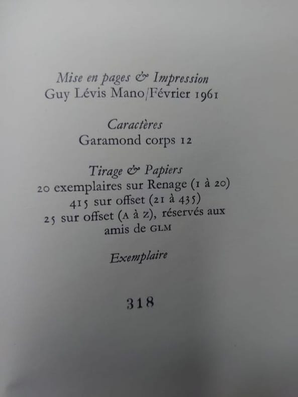 Guy Lévis Mano, 1961. Broché, couverture ivoire imprimée, non coupé. 16,6 x 10,5 cm.