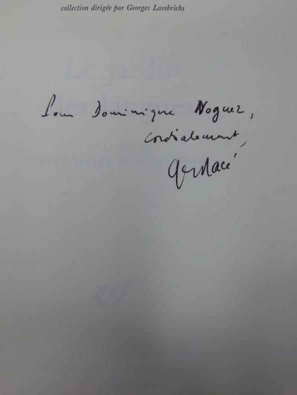 1974 Paris, Gallimard, 1974. 20,5 x 14 cm, 78 pp. Broché, couverture légèrement salie sinon bon exemplaire. Exemplaire du S.P. Envoi autographe signé de l'auteur à Dominique Noguez.