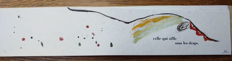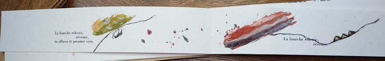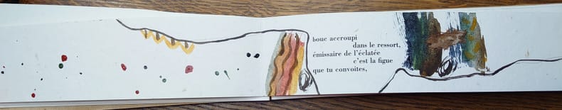 Sans date, 31 x 6 cm, format à l'italienne,en feuilles sous couverture, non paginé. A priori il manque la couverture. Peintures aux pigments d'ocre et indigo. Très bel exemplaire.