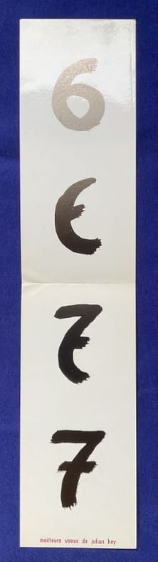 43 x 9,5 cm. Un feuillet plié en deux, sérigraphie. Carte de voeux illustrée d'une composition typo-picturale en sérigraphie, propre au style de cet artiste affichiste belge.