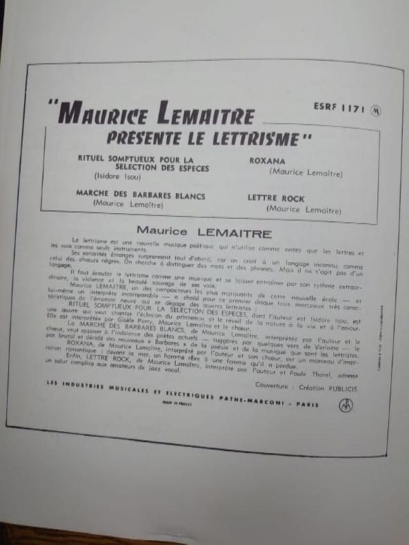 Paris Lettrisme 1971 Lettrisme, Mensuel Nouvelle Série n°24, Août 1971. Pochette à rabats imprimés, avec 4p. de texte et trois disques 45 tours dont deux sont les reprises des éditions respectives de 1958 et 1966, le dernier étant original "proche de nos dernières audaces artistiques" (texte de Lemaître).Etat neuf. Vinyl 63. (100726)