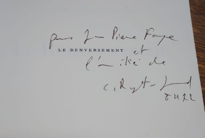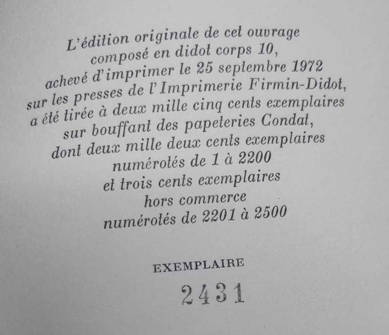 1972 Gallimard, 1972. 20,5 x 14 cm, 86 pp. Broché, couverture rempliée. Couverture légèrement salie sinon bon exemplaire. Édition originale, un des 300 ex. hors commerce. Exemplaire du Service de Presse. Envoi autographe signé de l'auteur à Jean-Pierre Faye.