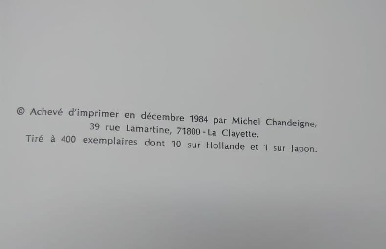 1986 Michel Chandeigne, Paris, 1986. 25 x 17,5 cm, 25 pp. Broché, couverture rempliée légèrement usée sinon bon exemplaire. Texte grec et traduction française. Tirage limité à 400 exemplaires.