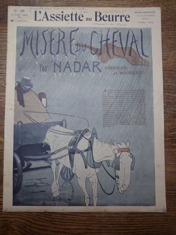 32 x 24,5 cm, 12 pp. Plaquette agrafée, trace de rouille à l'agrafe, sinon bel exemplaire. Envoi autographe signée Nadar à [Eugéne] Demolder.