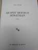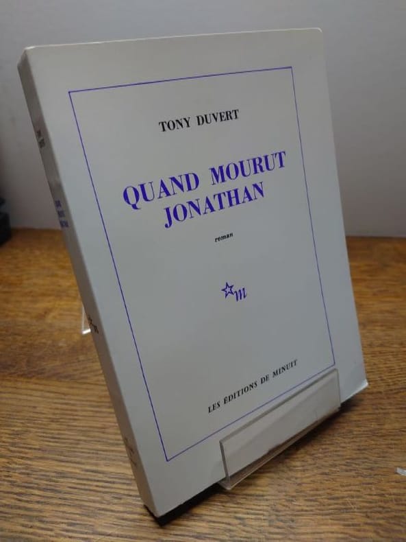 Ediiton originale au tirage limité à 149 exemplaires numérotés, celui-ci un des "92" sur bouffant sélect (82). “Quand mourut Jonathan raconte l’histoire de deux garçons, un enfant, Serge et un homme, Jonathan. L’histoire d’une amitié sans phrases et sans interdits. Leurs intimités physiques les plus audacieuses sont sans doute ce qu’elle a de plus ingénu.” Ed. de Minuit.