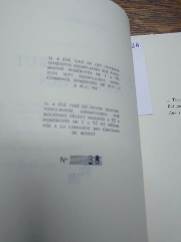ed. de Minuit 1978 in-8 br., edition originale, ex. numerote sur bouffant select (2e papier), non coupe