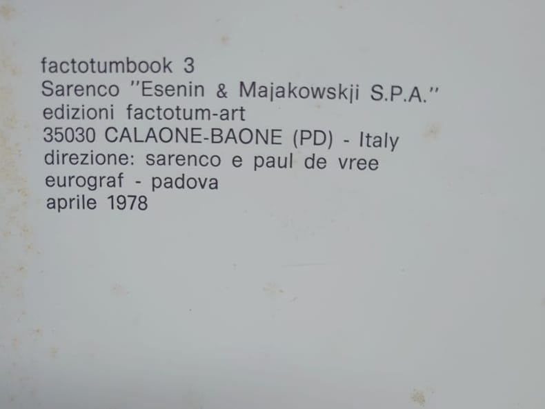 Factotumbook 3. Calaone-Baone, Factotum Art Edition, avril 1978. 27 x 19,5 cm, non paginé. Couverture légèrement tachée sinon bon exemplaire.
