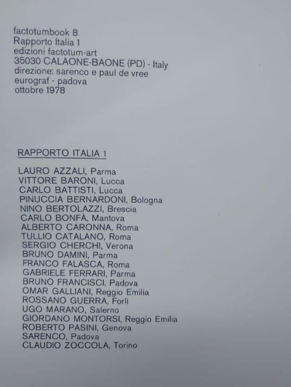 Factotumbook 8. Calaone-Baone, Factotum Art Edition, octobre 1978. 27 x 19,5 cm, non paginé. Couverture légèrement tachée sinon bon exemplaire.