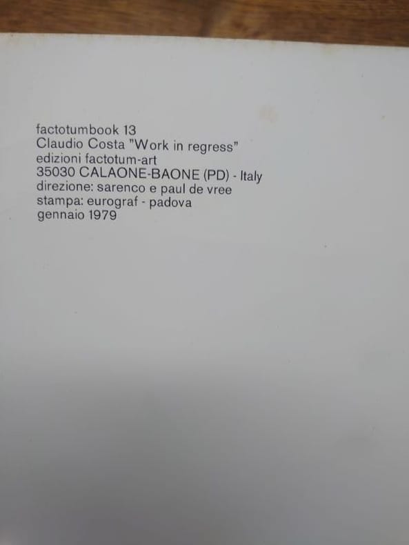 Factotumbook 13. Calaone-Baone, Factotum Art Edition, gennaio 1979. 27 x 19,5 cm, non paginé. Couverture légèrement tachée sinon bon exemplaire.
