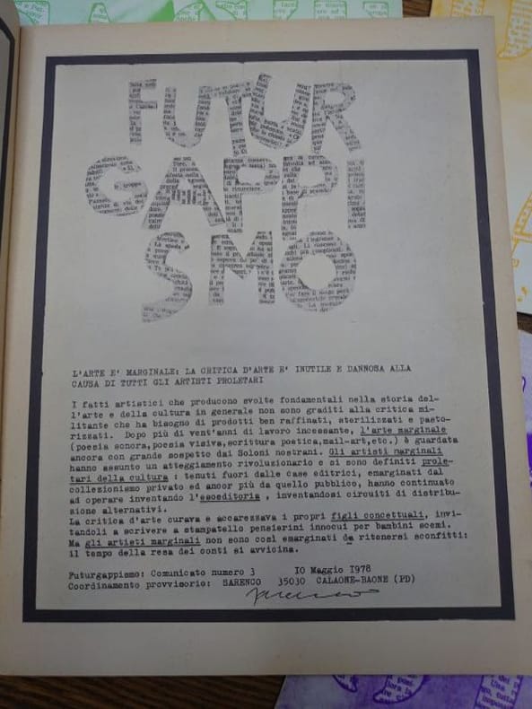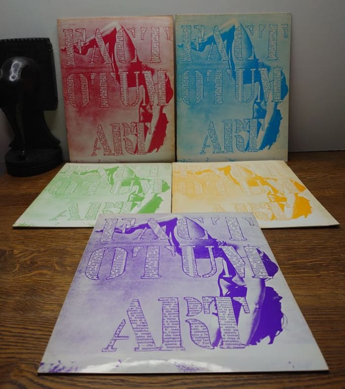 Nous avons : Numéro 2, maggio 1978. Numéro 3, agosto 1978. Numéro 4, dicembre 1978. Numéro 5, gennaio, 1979. Numero 6, febbraio, 1979. Au total, cinq numéros de la revue d'art moderne, de musique et de poésie sur les sept qui ont été publiés. Contributions de Sarenco, Paul de Vree, Jean-François Bory, Raoul Hausmann, Italo Mussa, Alain Arias-Misson, Lamberto Pignotti, Marinus Boezem, Takahashi Shohachiro, Michele Perfetti, Egidio Mucci, Bernard Heidsieck, Gianfranco Bellora, Riccardo Guarneri, Bernard Aubertin, Henri Chopin, entre autres. Les contributions sont en italien ou en français. Les couvertures sont légèrement usées sinon bons exemplaires.