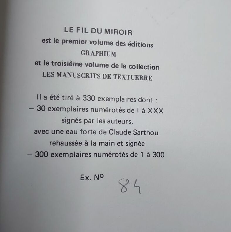Graphium, 1980. 25 x 18 cm, non paginé. Broché, couverture légèrement usée, traces de scotch sur les pages de garde, sinon bon exemplaire.Édition originale, un des 300 ex. num.