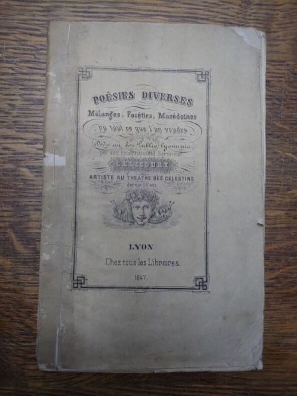1847 Lyon, Chez tous les Libraires, 1847. 18,5 x 12 cm, 54 pp. Plaquette brochée, couverture usée avec des petits manques, quelques pages tachées, sinon bon exemplaire. En frontispice portrait en pied de l'auteur. Édition originale. Rare.