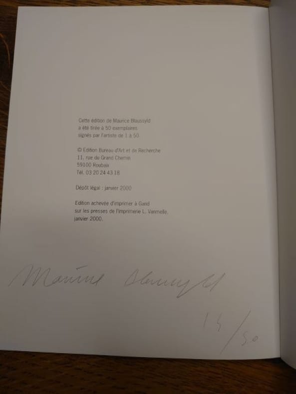 2000 Roubaix, Édition Bureau d'Art et de Recherche, 2000. 24 x 18,8 cm, non paginé. Broché, bel exemplaire. Edition originale, tirage limité à 50 exemplaires numérotés et signés par l'artiste.