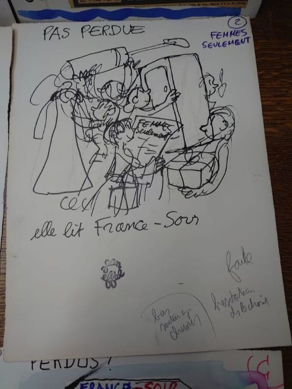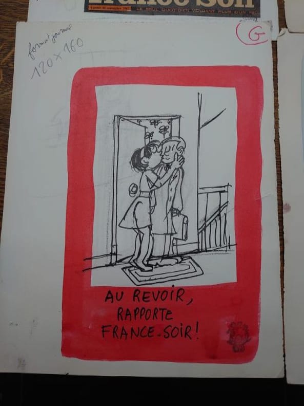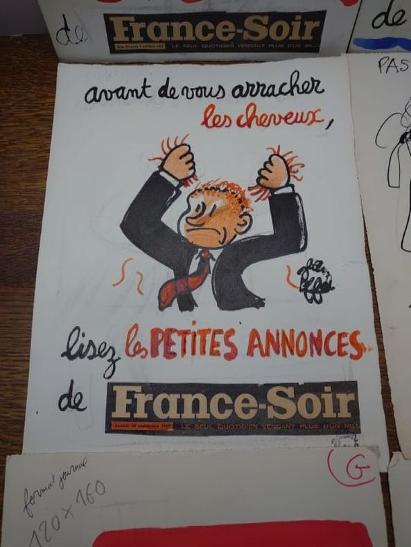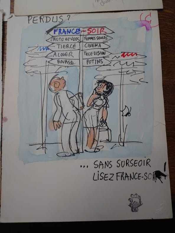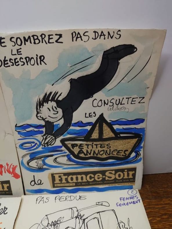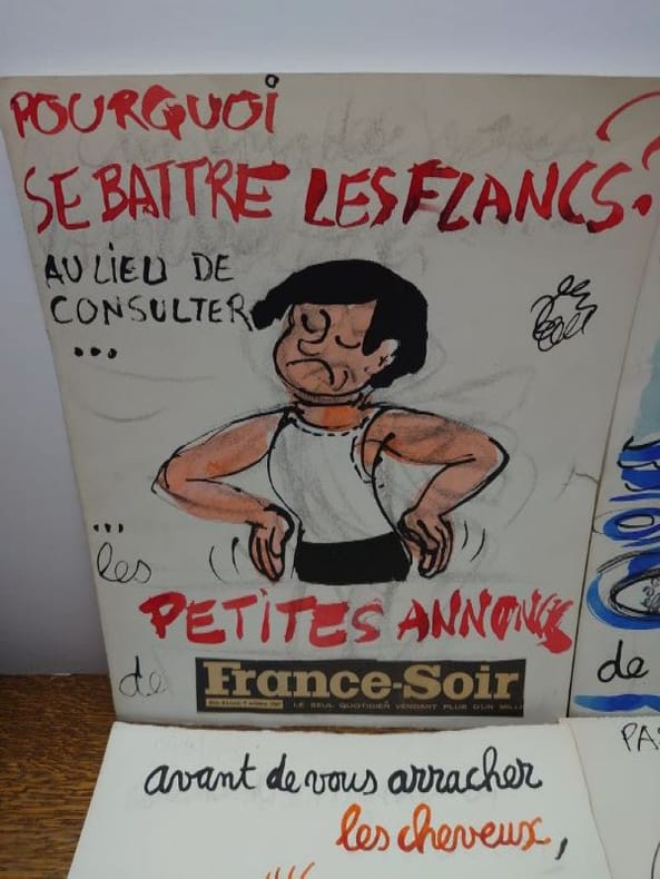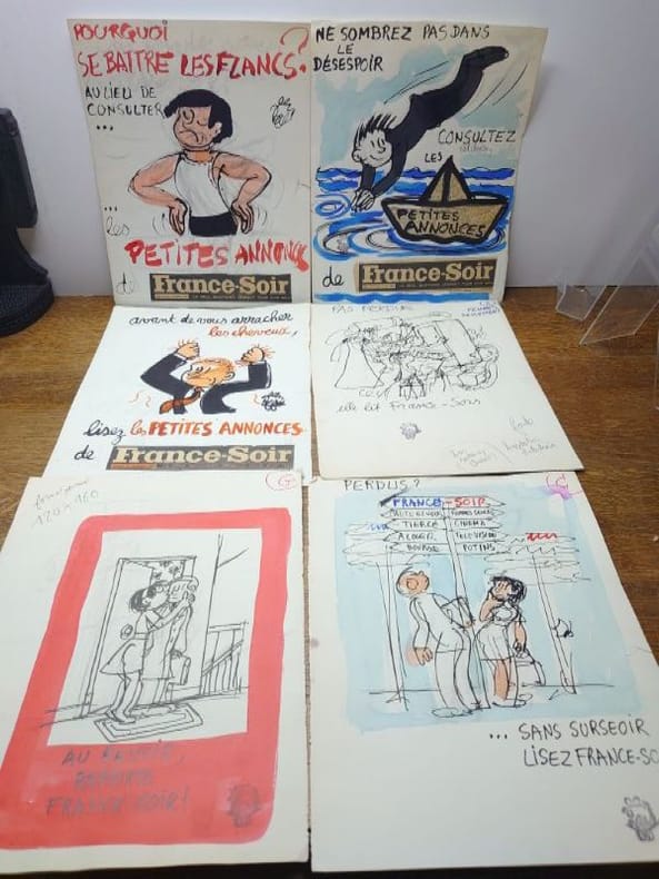 32,5 x 25 cm, sur papier fort. Trois sont datés de 1967 et portent tous ou la signature ou le tampon signature de Jean Effel.