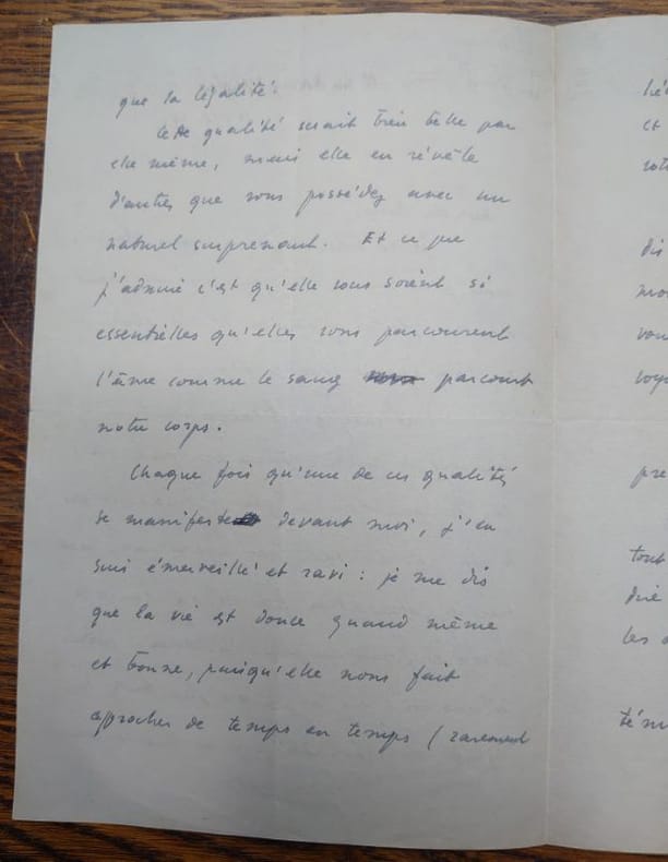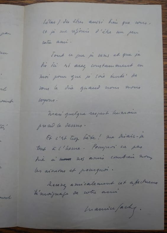 27 x 21 cm, 1 f. plié en quatre manuscrit sur trois volets. Daté du 16 avril 1939. une lettre d'amitié et même d'admiration de Maurice Sachs, avec cette annotation en haut à droite de la première page "Lettre de Maurice Sachs pour Pierre Béarn fort étonné."
