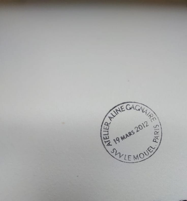 24,5 x 16 cm, a priori dessin au feutre. Au dos tampon de l'atelier Aline Gagnaire.