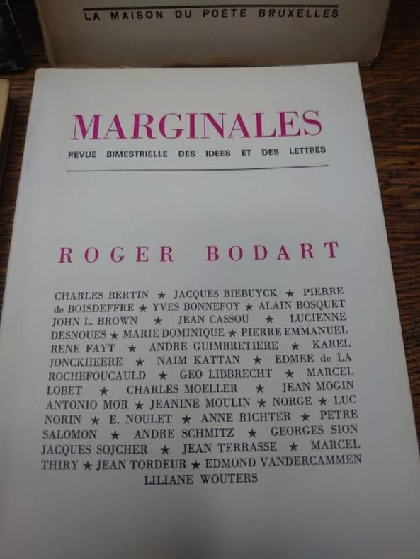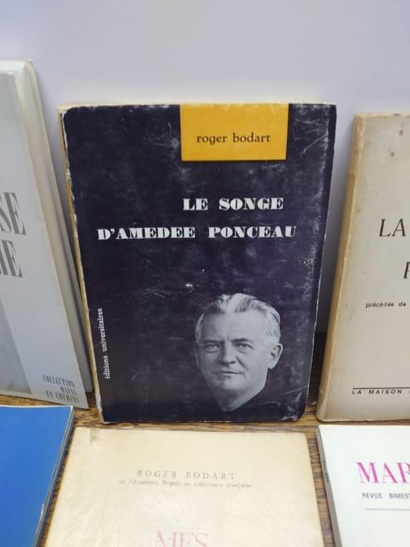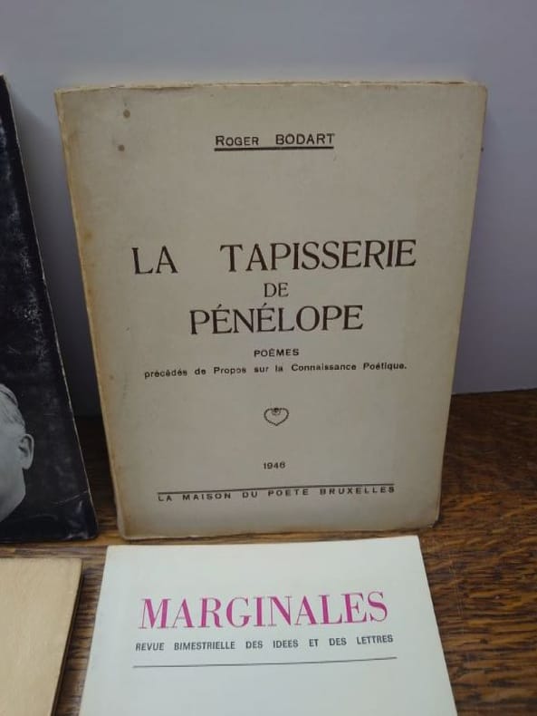 Nous avons : - La tapisserie de Pénélope. La Maison du poète, 1946. Envoi autographe signé à Jacques [Sojcher]. - Mes Amériques. Editions des Artistes, 1956. Édition originale numérotée. - Le nègre de Chicago. Pierre Seghers, 1958. - Le songe d'Amédée Ponceau. Éditions universitaires, 1959. - Psychogenèse d'un poème. André de Rache éditeur, 1973. Envoi autographe signé à Jacques Sojcher. - Revue Marginales de juin 1974. Hommages à Roger Bodart.