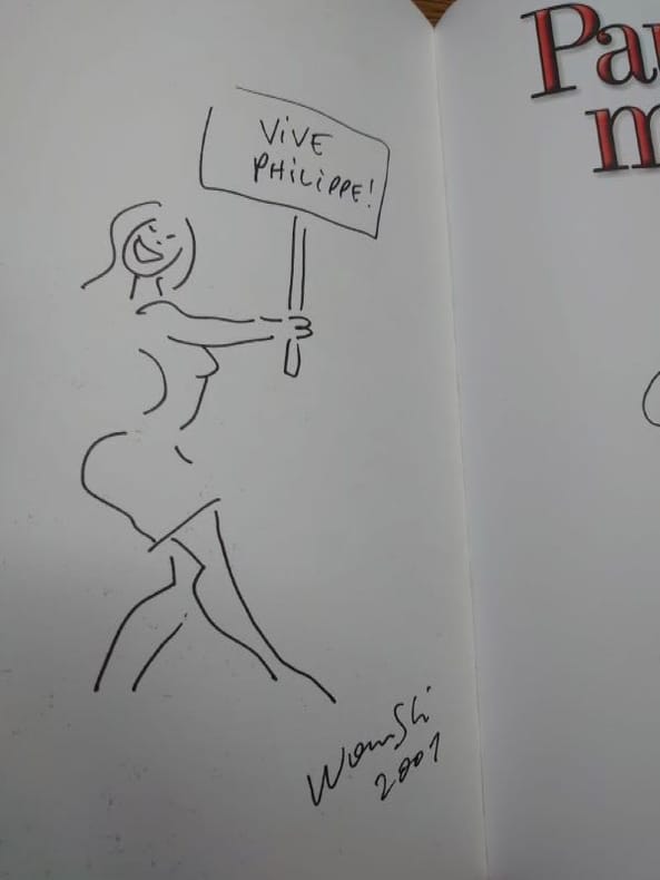 Editions Albin Michel 2002. 30 x 21,5 cm, broché non paginé. Couverture, textes et dessins de Georges Wolinski. Dos resté carré. Très bel état général. Réédition ornée d'un dessin original signé, pleine page de Georges Wolinski.
