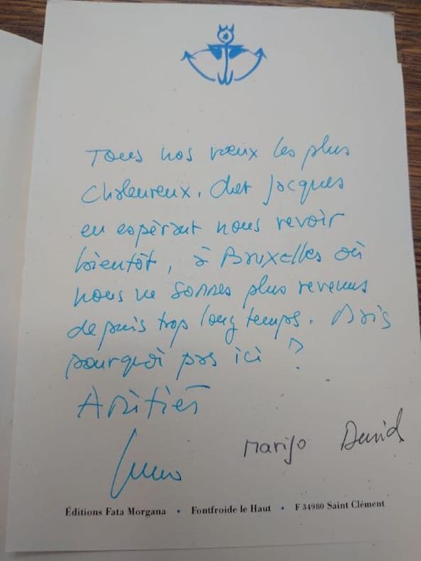 Un feuillet plié, 8 pp. 21 x 15 cm. Insérée une feuille manuscrite de Bruno Roy, signée de Bruno Roy, Marijo Roy et David Massabuau.